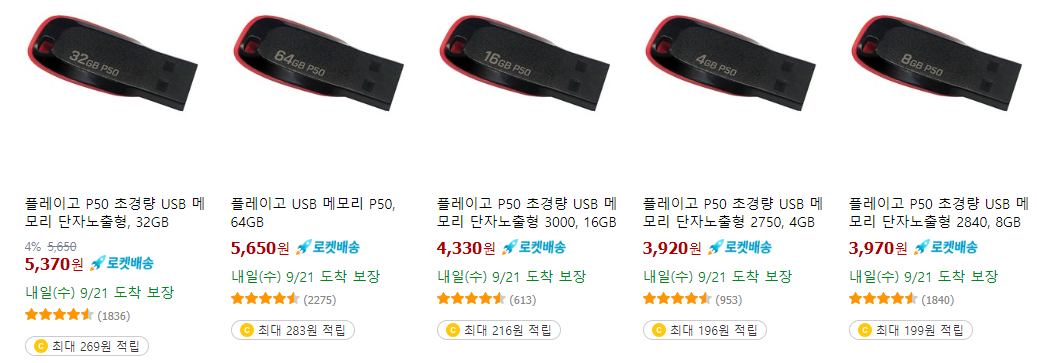 굳이 비싼 것이 필요 없기도 하여서 낮은 가격으로 바꿔서 보았고 보이는 usb들 큰 가격 차이는 안 나지만 어찌 됐던 저 가격에 배송비를 더해야 한다