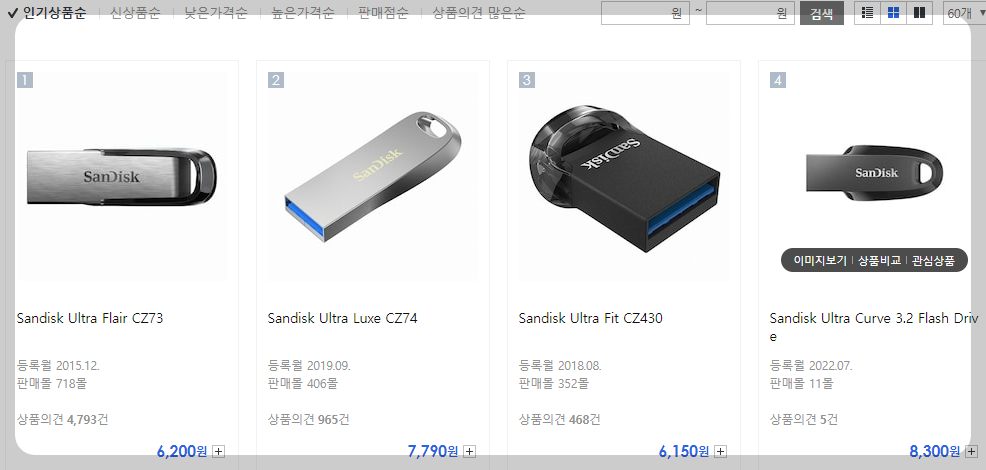 작성 당시 다나와에서의 64GB usb의 인기상품 순 역시 sandisk다....