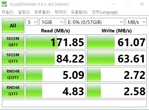 꽂으면 57GB로 나온다. 표시할 때에는 10진수 64GB로 표기하지만 컴터는 이진수로 표기하기 때문에 57GB로 표시된다 사실을 알기는 알지만... 그냥 처음부터 57GB입니다. 라고 할 때는 아직 멀었나...