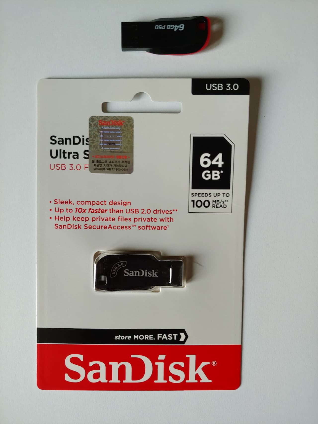 배송은 저렇게 온다. sandisk usb는 대부분 저런 형식으로 포장되어 있더라. 맨 위에 보면 예전에 산 p50 usb가 있는데 외형적으로 비슷하게 생겼다. 그래서 틀은 다 똑같이 찍어내나 보다 싶었는데, 음? p50이 좀 더 가볍게 느껴진다.