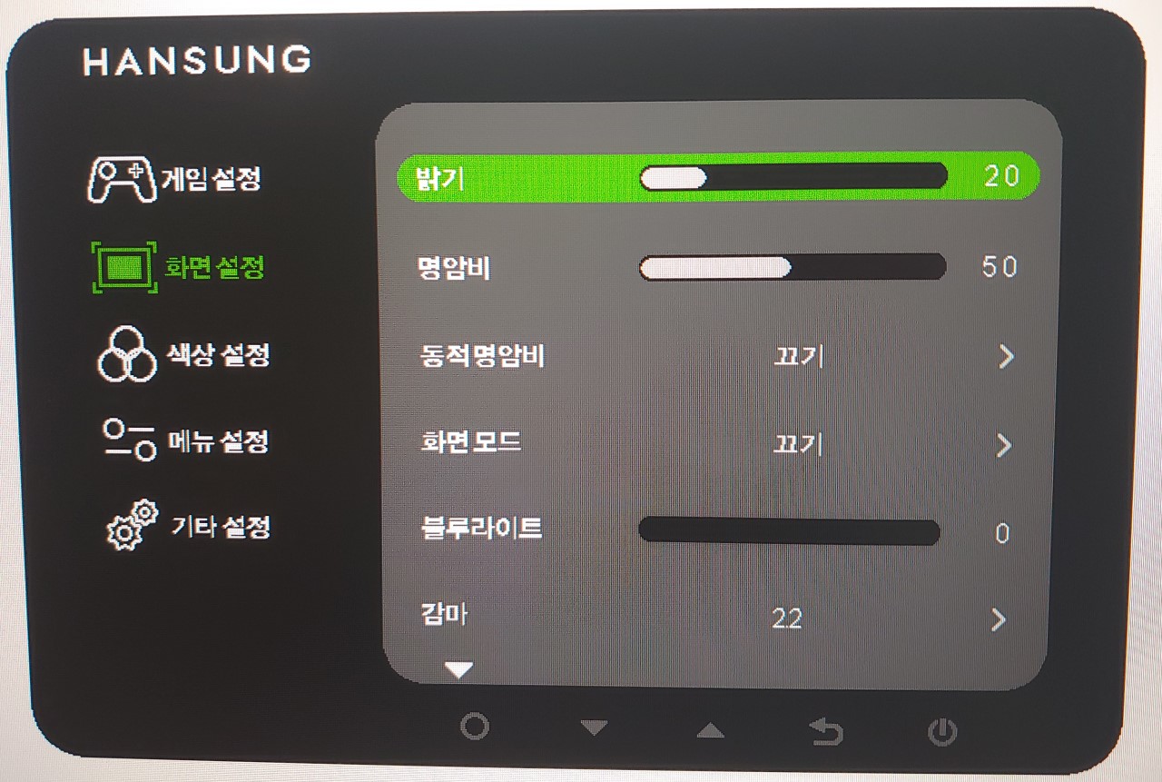 의외였던 것은 osd메뉴인데, 대기업 모니터들이 아닌 모니터에게서 보이는 osd가 아니였다.